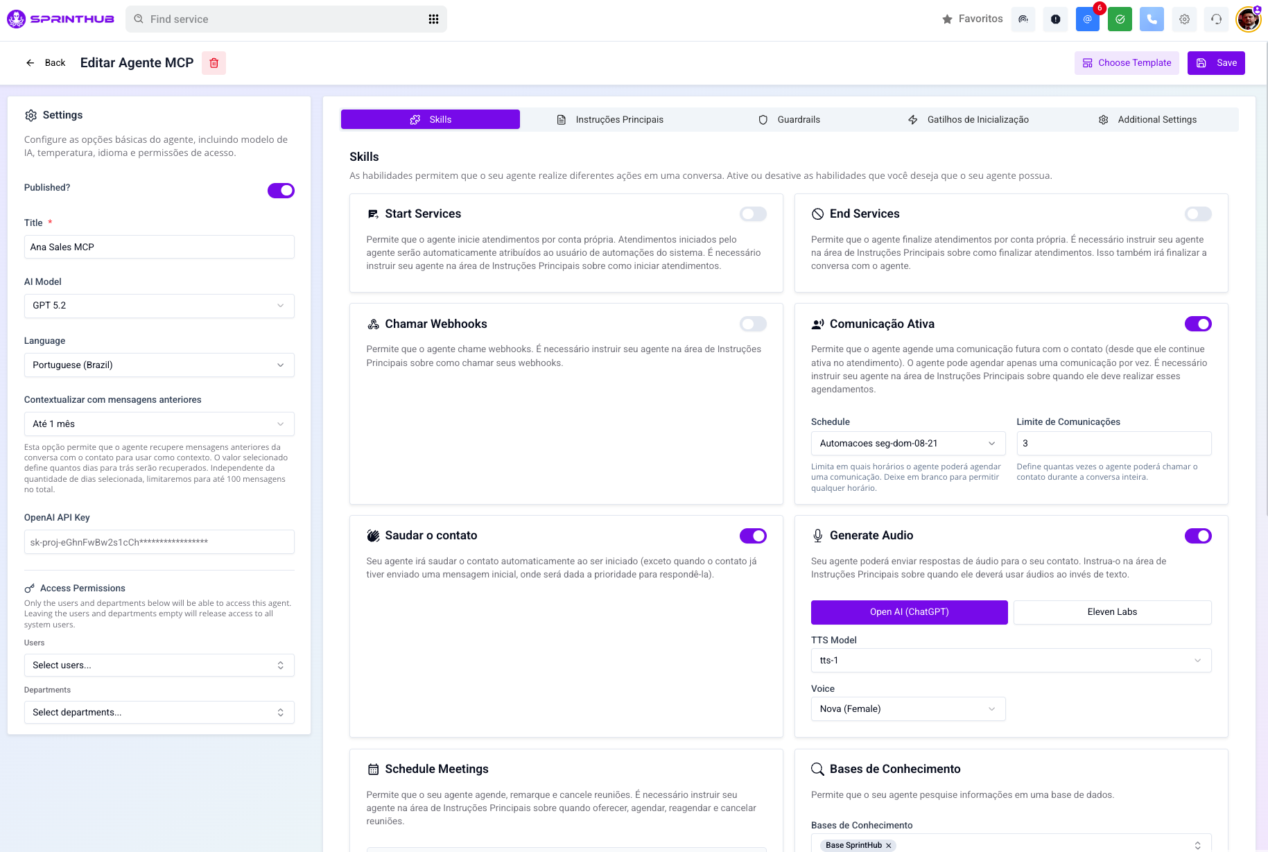 Um diferencial da SprintHub é permitir a personalização completa dos agentes de IA. Veja como potencializar cada recurso: